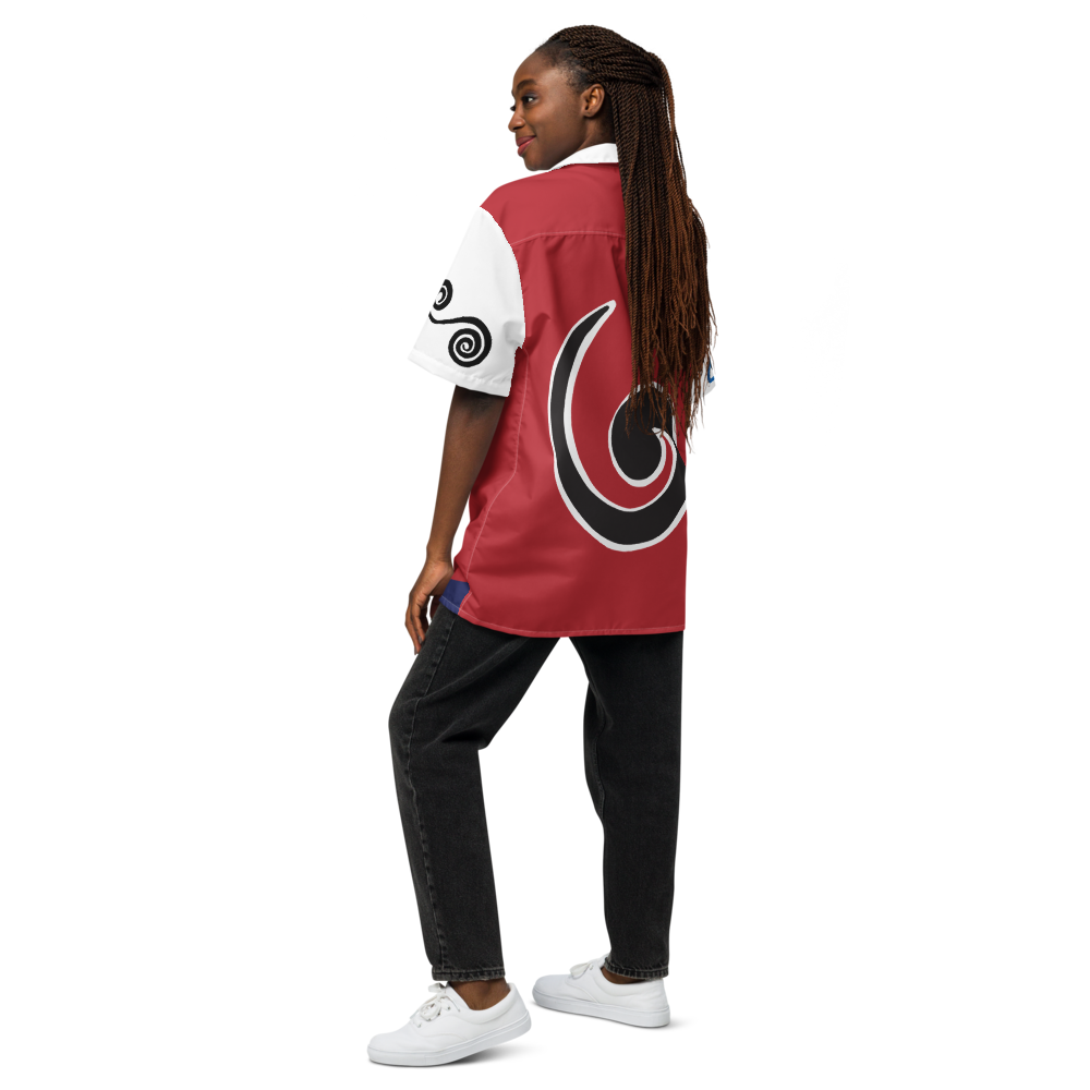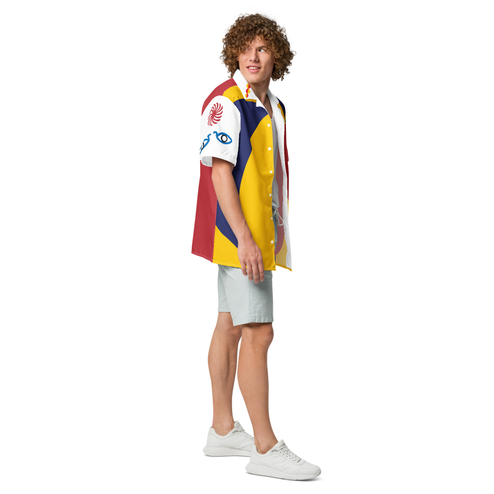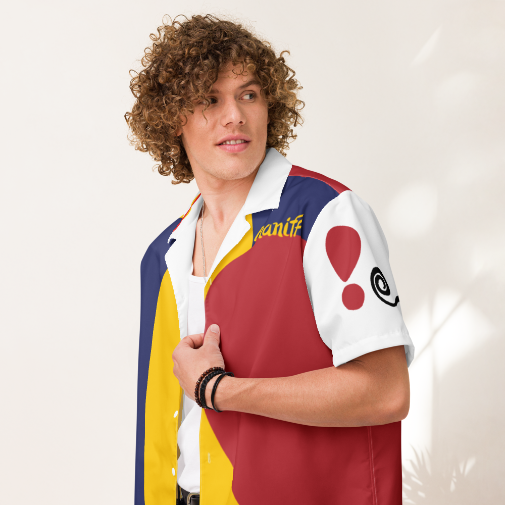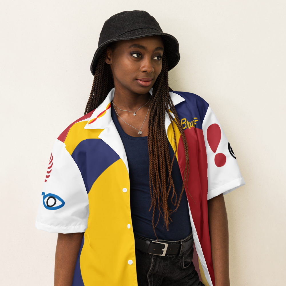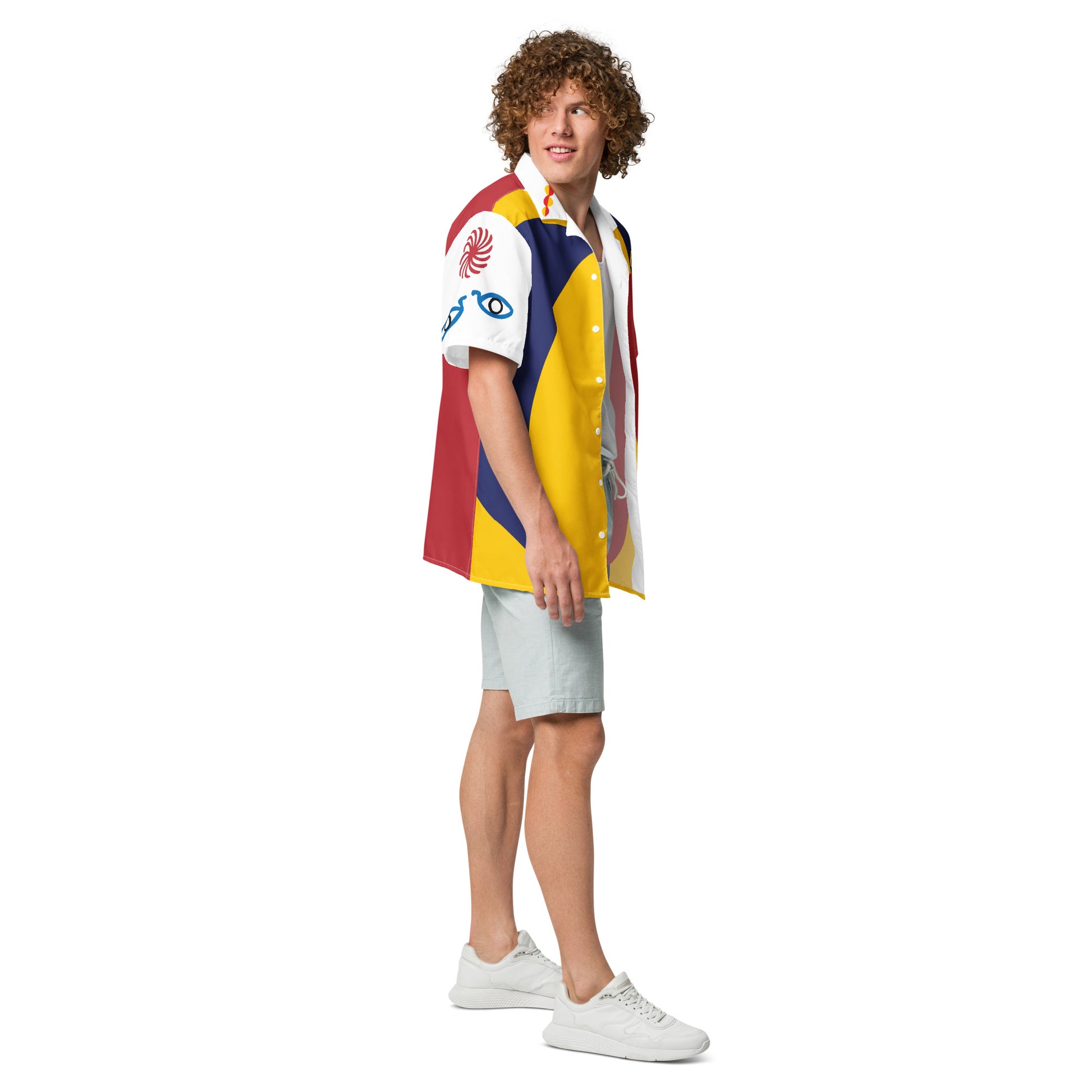 Shirt Button Up Short Sleeve Men's Women's Braniff Alexander Calder Designs Flying Colors of the United States DC-8-62 1973