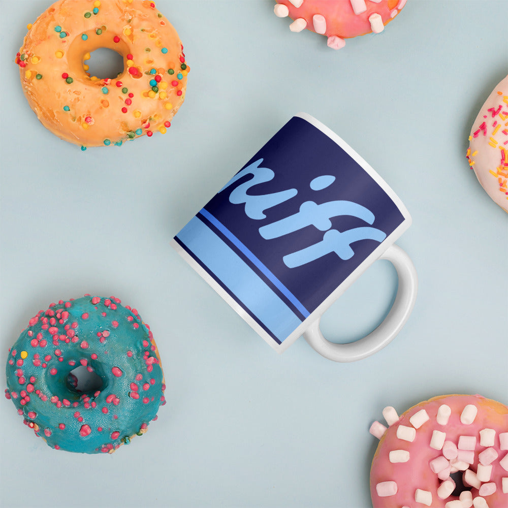 Coffee Mug 11 oz Braniff Halston Design Mercury Blue Ultra with Power Paint Stripes 1978