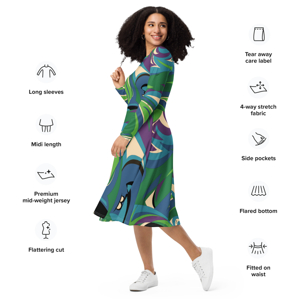 Dress Long Sleeve Women's Braniff Emilio Pucci Design 1974 Classic Collection Blue Turquoise