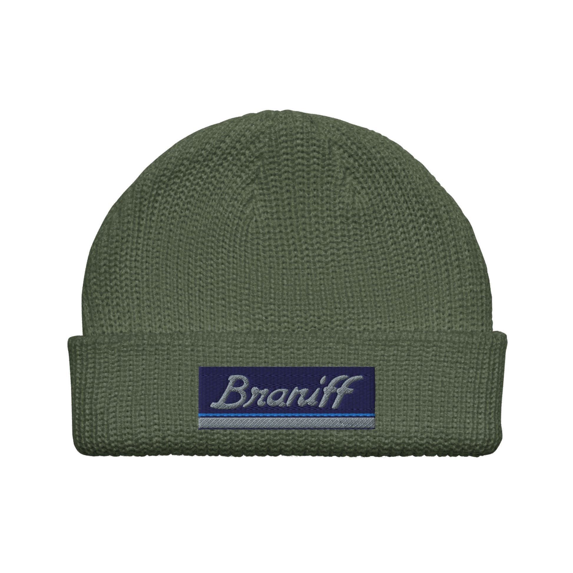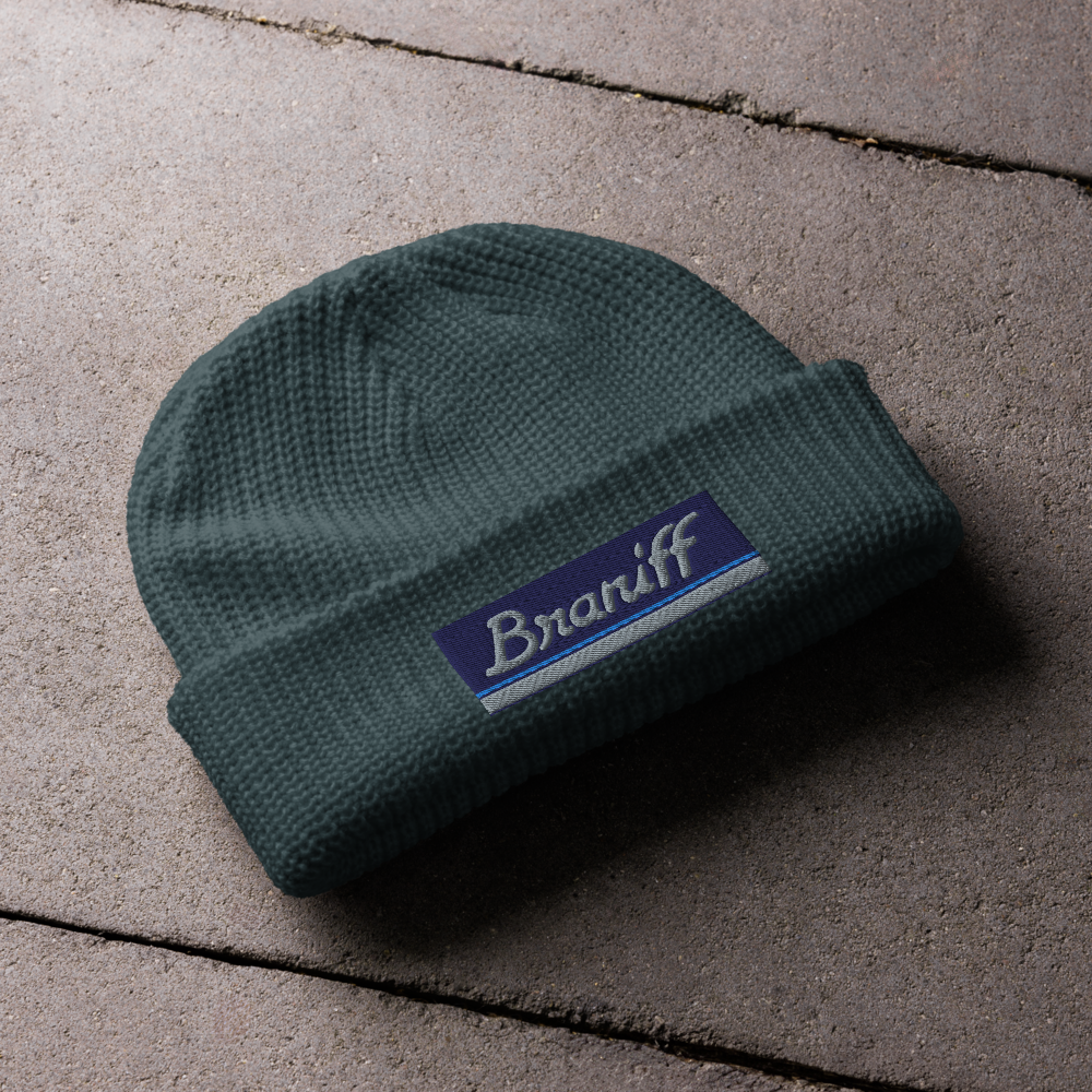 Fisherman Beanie Hat Skull Cap Toboggan Braniff Ultra Mercury Blue Power Paint Stripes 1978